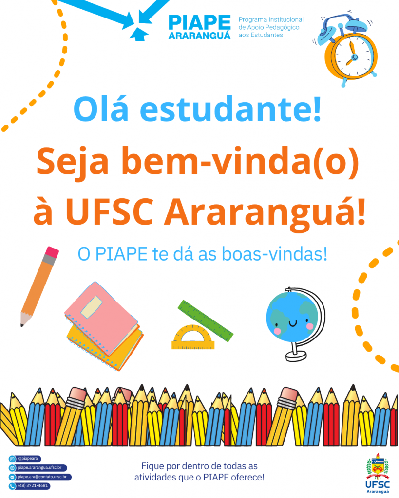 Em caso de dúvidas ou para mais informações, entre em contato com o PIAPE pelo e-mail piape.ara@contato.ufsc.br